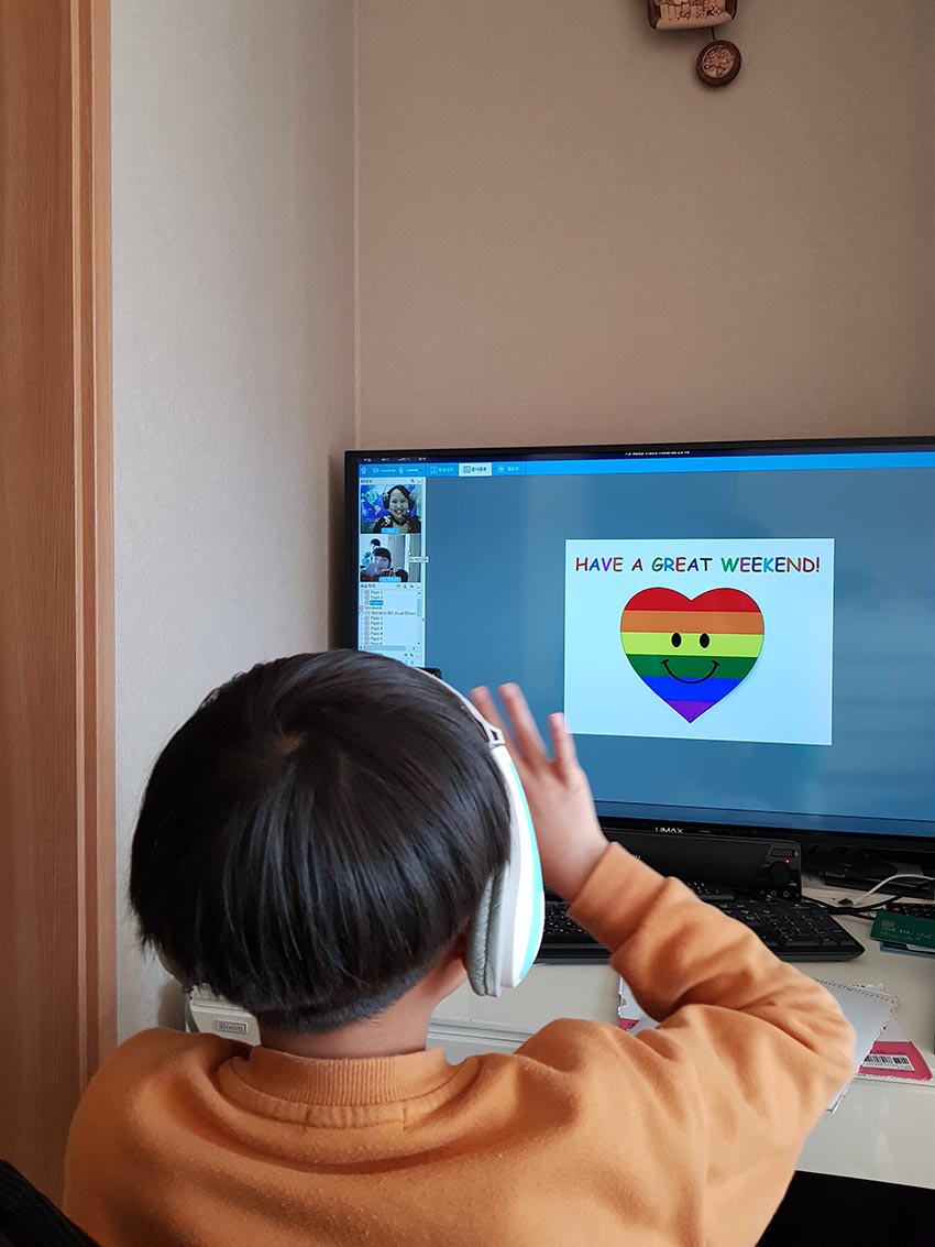 화상 영어 수업이 처음인데, 아이가 선생님을 '매우' 좋아합니다.