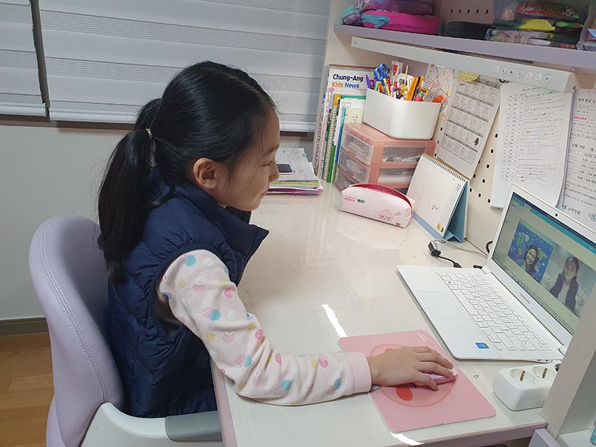 아이가 수업하는 모습이 많이 재미 있어 하는 것처럼 보입니다.