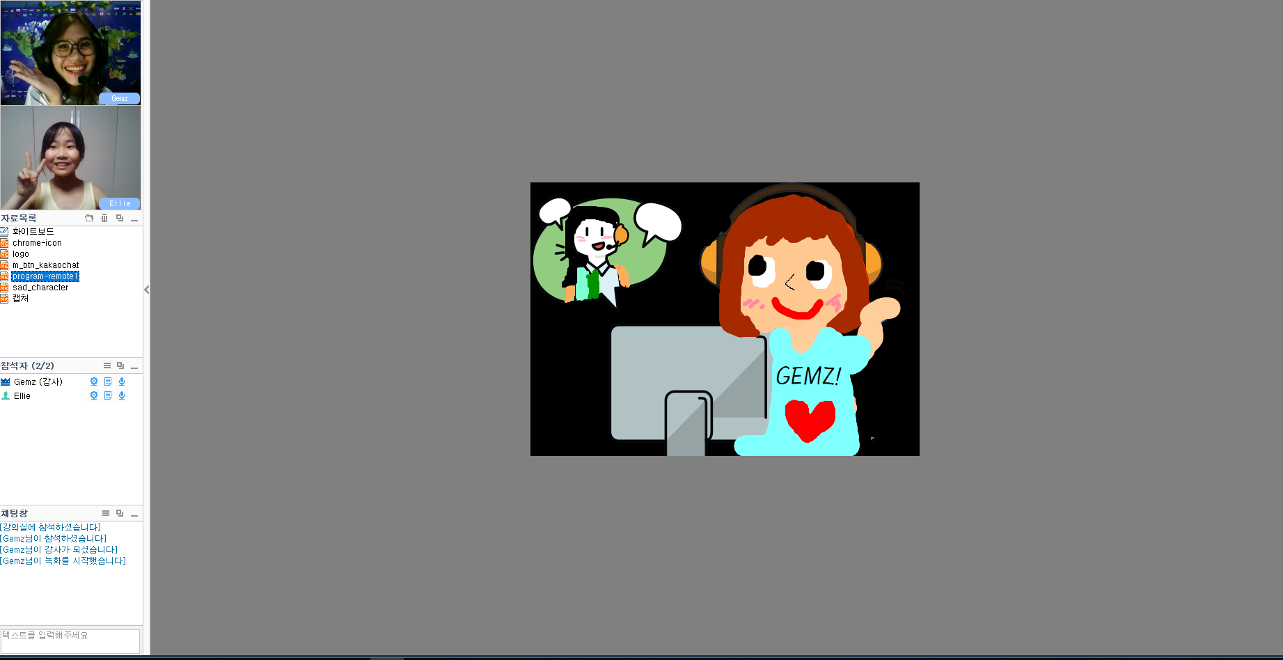 가지고 있는 사진이나 물건을 선생님께 보여드리기도 하고