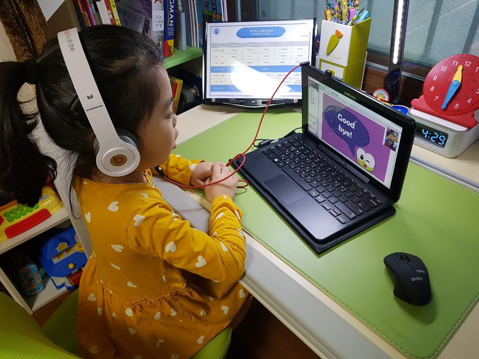 아이가 화상영어를 시작한 지 한 달 되었어요.