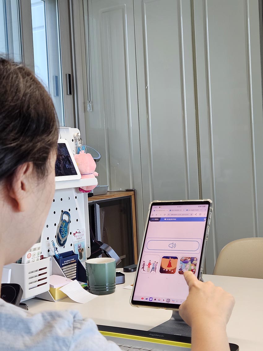 아이가 평소 헤드셋으로 수업을 하기도 하고 엄마인 제가 수업 듣는걸 싫어해서 수업하는 모습을 보지못했었는데