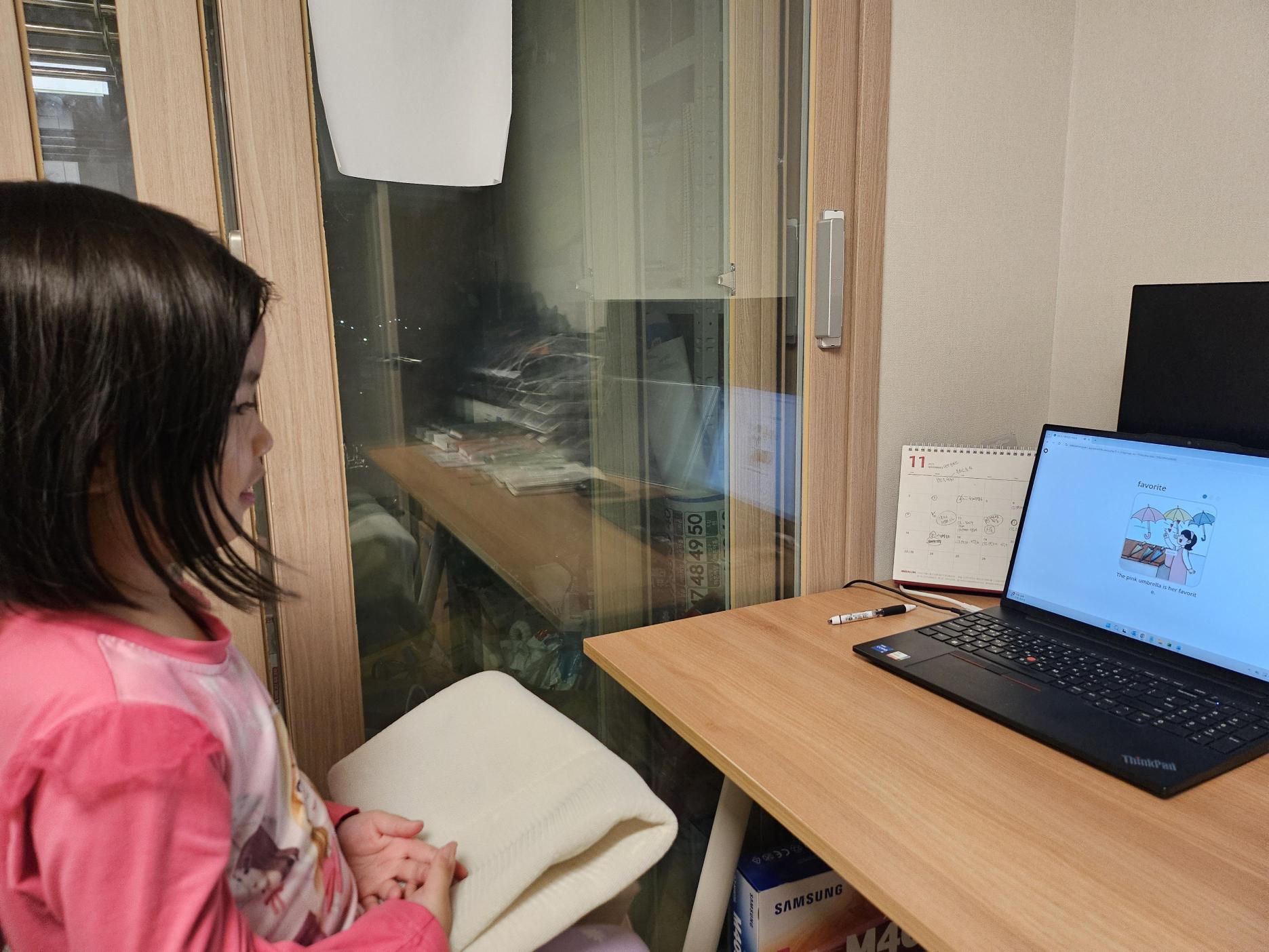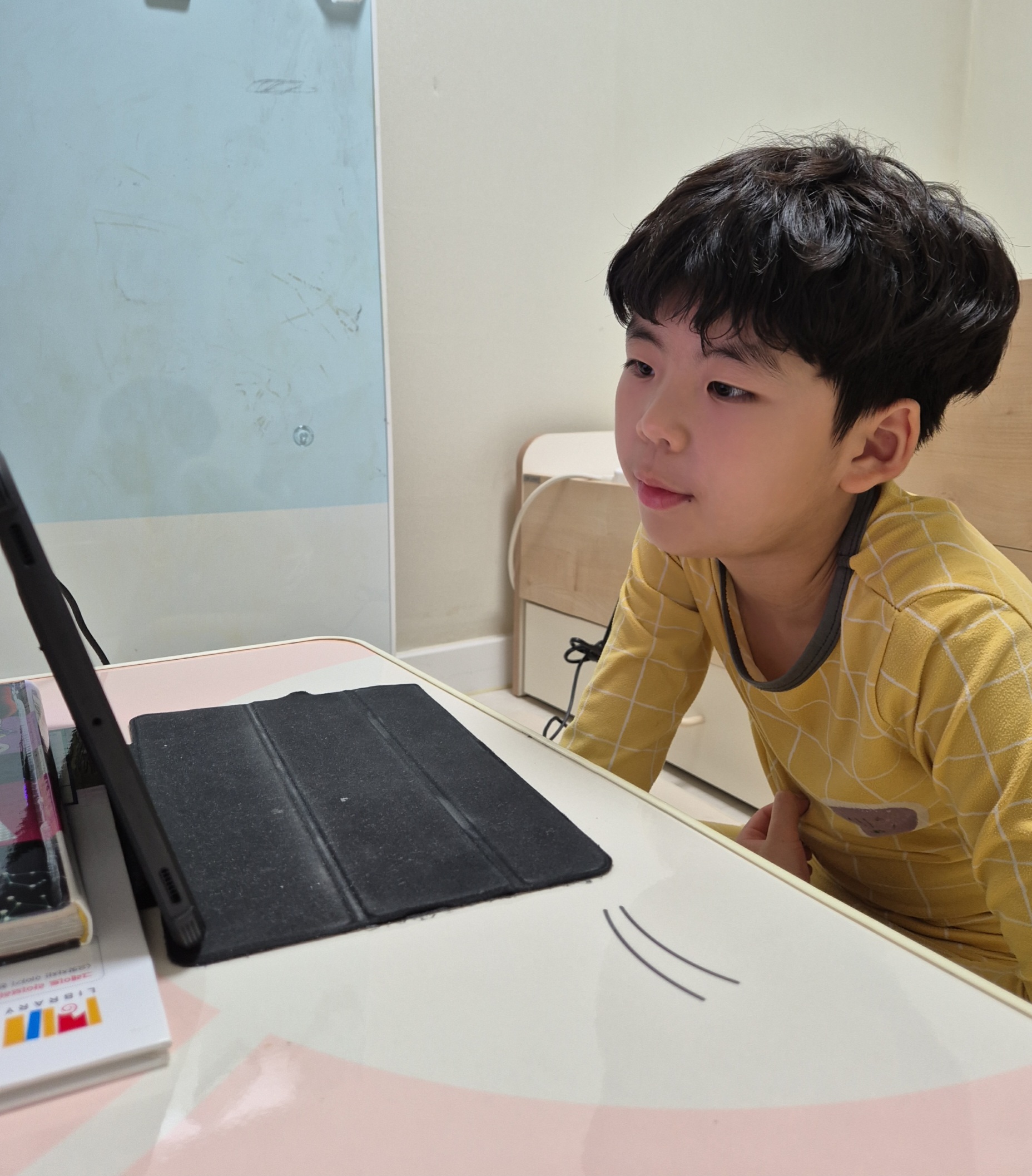 낯가리는 아이이고, 영어 학원보다는 일대일 수업을 원해서 여러 화상영어 업체를 찾아봤고, 무료테스트도 여러군데 해봤는데 체험수업 선생님이 타업체보다 정말 친절하셨고 아이맞춤형이라는게 느껴져서 선택했어요.