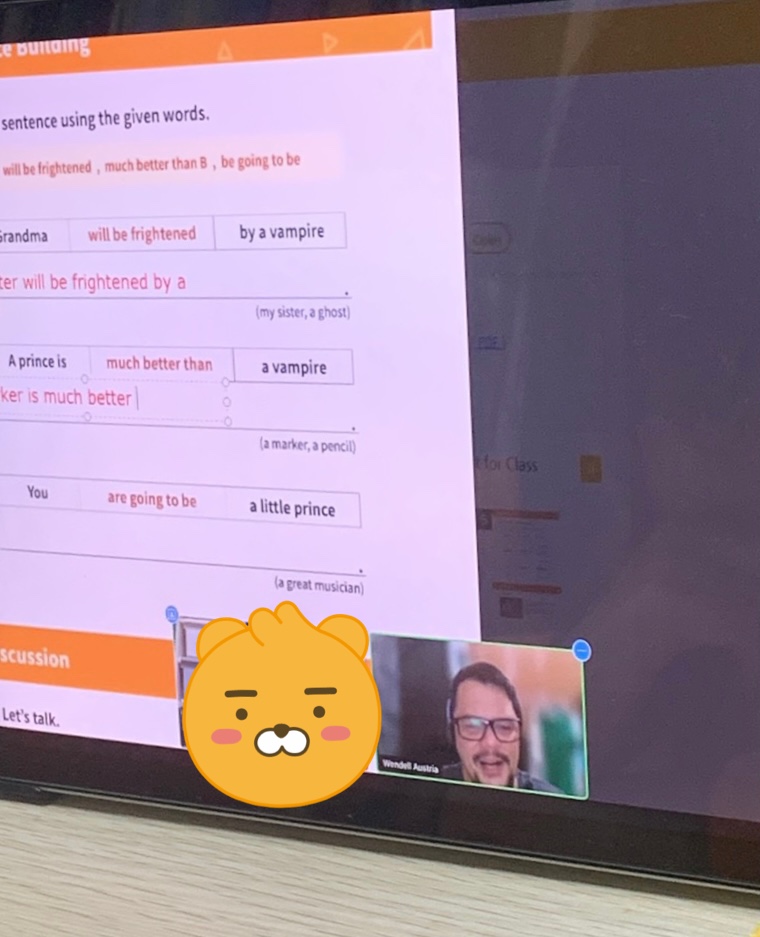 모르는 단어나 문장을 쉽게 설명해서 알려주고 유쾌하게 수업을 진행하고 있어요. 기본 문법등은 학원에서 받고있어서 회화위주로 생각했는데 여러모로 도움을 받고있는거같아요~