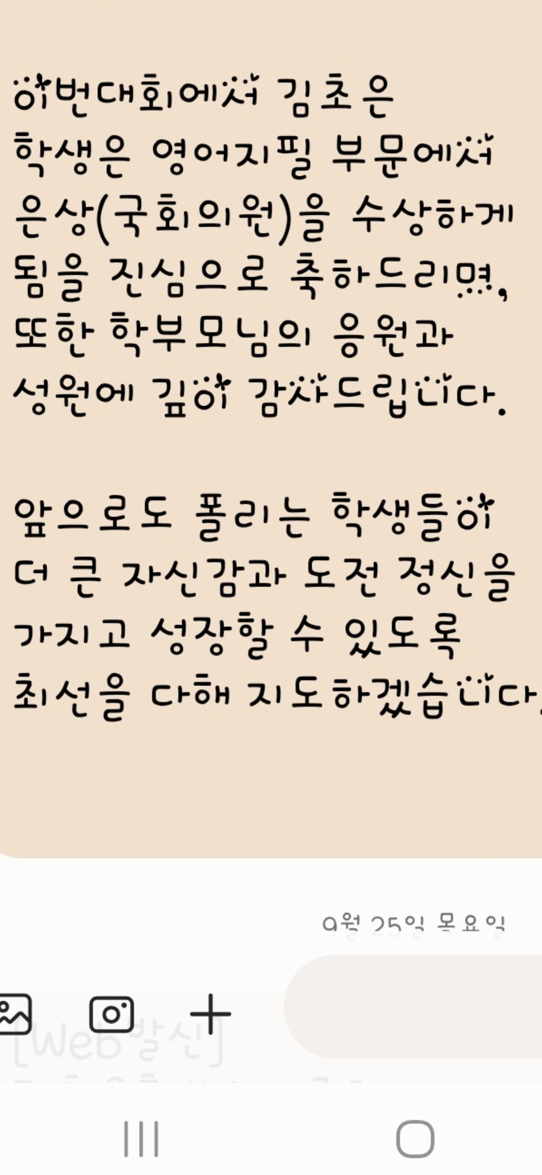지금처럼 게속 이렇게 수업해주세요~♡아이가 쓴편지 전달해주세요 ㅎㅎ 아이가 만족하니 저도 만족입니다♡