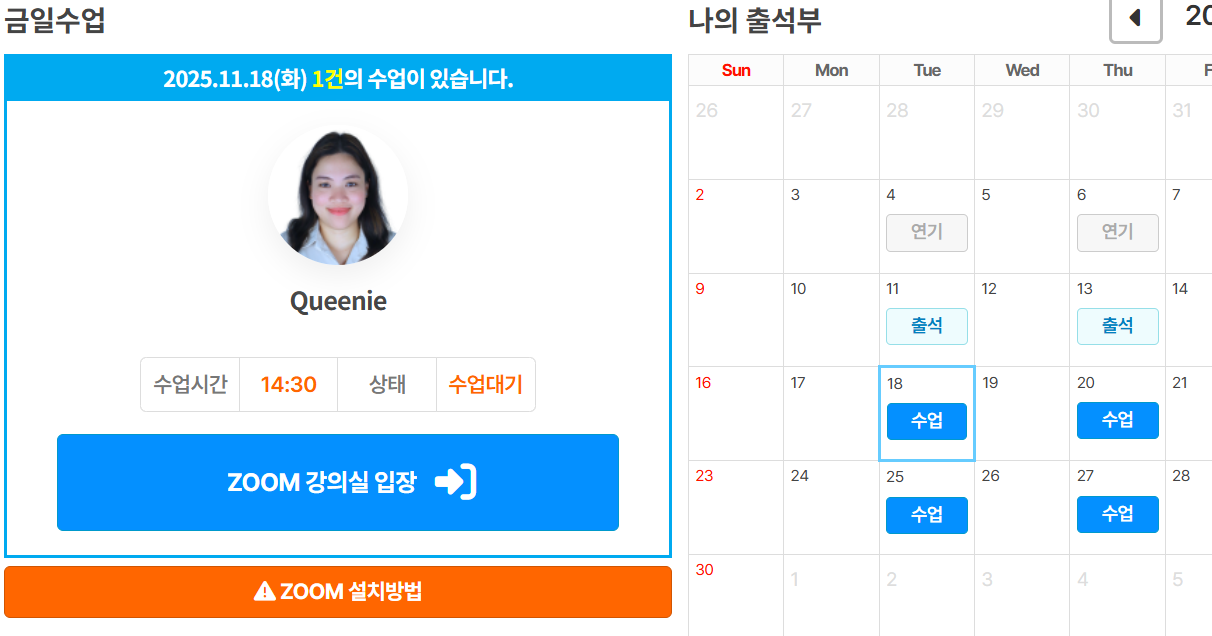 수업 연기 & 보강 신청