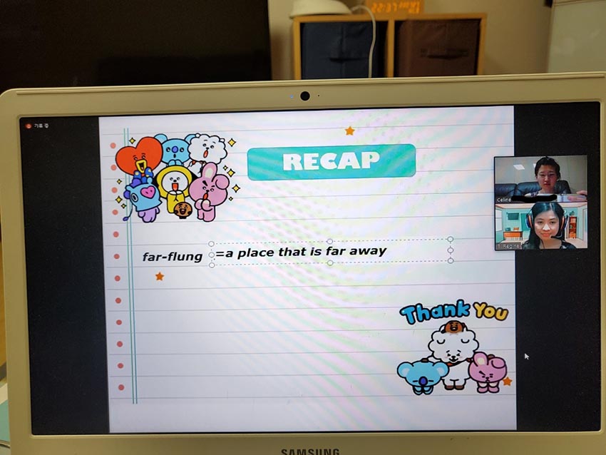 이런 저런 이야기를 영어로 선생님과 하고 있는 딸 아이를 보면서 흐믓하기도 하고 선생님이 아이의 마음을 잘 읽고 잘 리드한다는 생각이 듭니다.