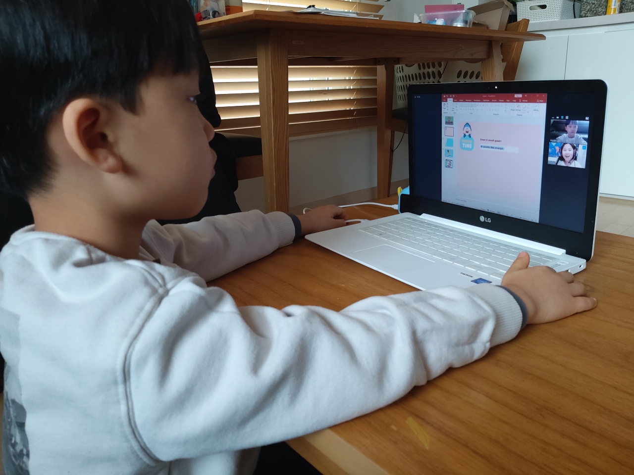 수줍음이 많은 아이라서 일대일 화상영어를 먼저 접해주는게 낫겠다고 생각하긴 했지만 파닉스 8개월차라 배운 단어도 아직 확실하게 읽어내지 못하는 경우가 많고, 아는 단어도 많지 않아서 리스닝이며 스피킹이 거의 되지 않고, 외국인을 대해본 적이 없어서 수강신청을 해놓고도 수업 진행이 되려나 처음에 걱정을 많이 했었어요.