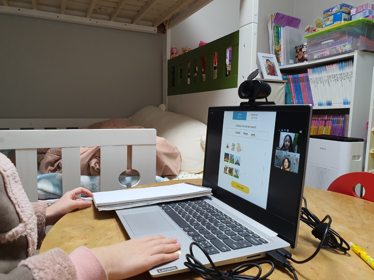 즐겁게 수업 따라가고 zoom으로 함께 그림도 그리고 쓰기도 하니 재밌있어 하는 듯해요