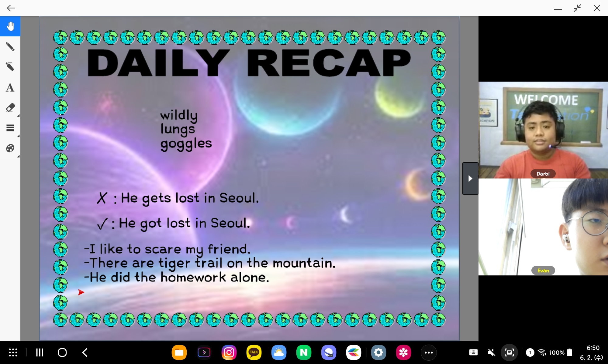 딱딱한 영어수업이라기 보다 일상생활에서 느낌점이나 서로 공유할수 있는 주제를 가지고 수업해주세요.