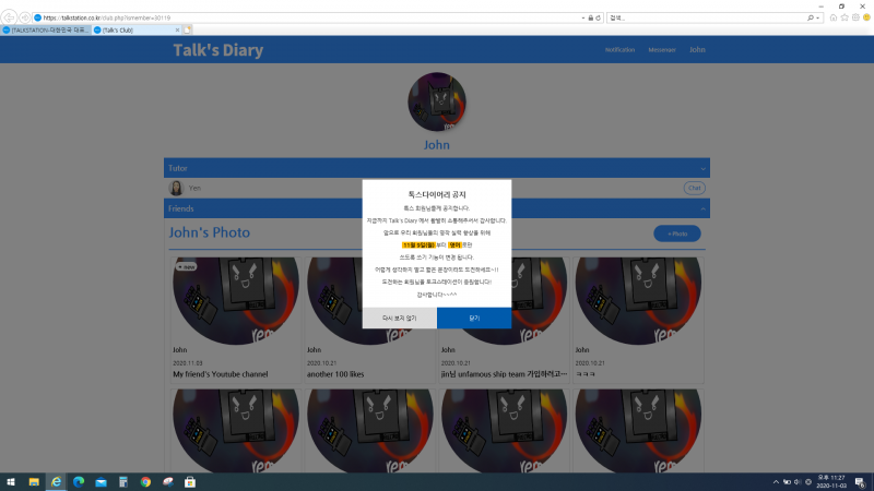 톡스 다이어리는 회원님들이 영어로 소통하면서 영작실력을 키울수 있는 공간입니다.